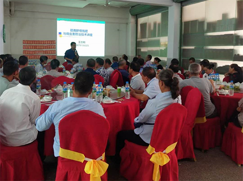9月20日,我公司生物菌肥会议在瑞金乡镇准时举行,现场来了60余名果农朋友们。江西分公司王总,重点讲了赣南脐橙的生物学特性及水肥管理技术,并针对果树后期管理需要注意的事项进行了详细讲解。