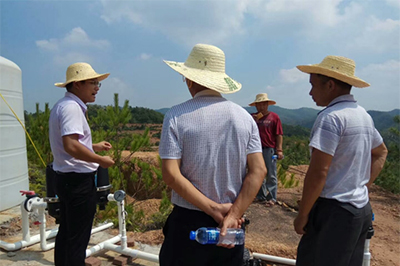 2017年9月26日,赣县区农业局刘副局长,土肥站彭站长等领导在我公司王总的陪同下,顶着烈日前往赣县区储谭镇,对我公司在储谭镇脐橙园建造的“水肥药一体化”工程进行验收。王总向农业局领导演示了操作效果,农业局领导看后非常满意,对工程给出了很高的评价。此次工程顺利通过农业局验收。