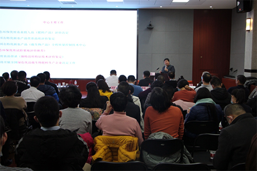 姜主任介绍了微生物肥料登记情况及新菌株新功能产品,生态环保优质农业投入品生产试点单位申报流程以及即将启动绿色优品微生物肥料生产企业的认定工作。