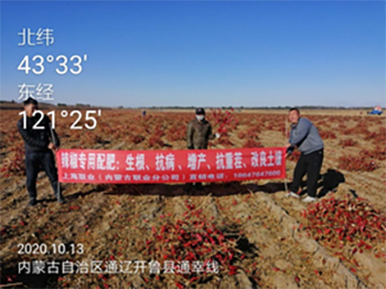 上海联业农业科技有限公司业务人员在内蒙古通辽开鲁县水溶性肥料进行测产宣传 发布时间:2020-10-28 00:00:00