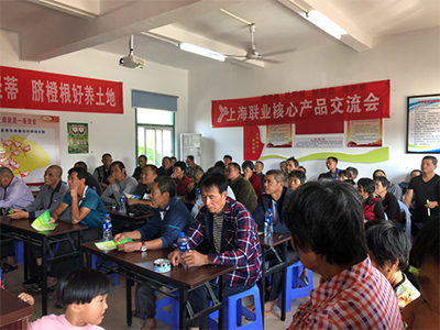 11月8日,在平和县南胜镇,上海联业(江西分公司)和南胜客户共同组织下召开谷霖、富镁根聚蒂生物有机肥的产品推广交流会,上海联业(江西分公司)总经理王总出席会议,前来参加会议的果农朋友共计100多人。