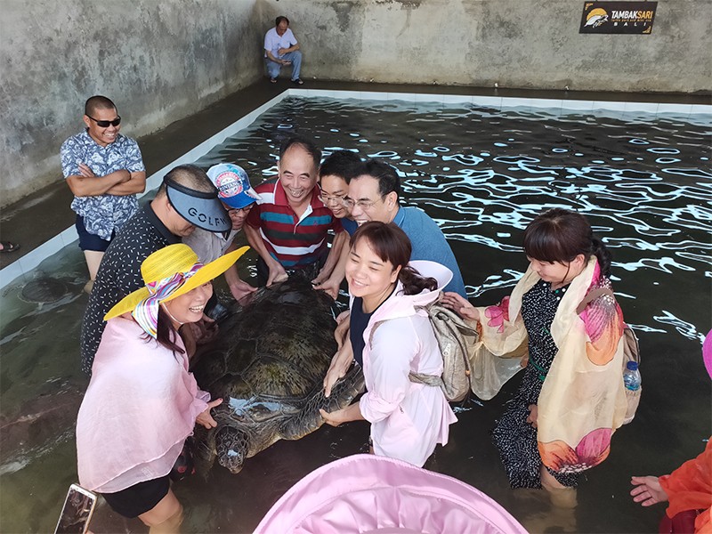 在海龟岛上旅游观光,还可以与那里的海龟一起合影留念。