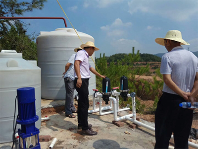 2017年9月26日,赣县区农业局刘副局长,土肥站彭站长等领导在我公司王总的陪同下,顶着烈日前往赣县区储谭镇,对我公司在储谭镇脐橙园建造的“水肥药一体化”工程进行验收。王总向农业局领导演示了操作效果,农业局领导看后非常满意,对工程给出了很高的评价。此次工程顺利通过农业局验收。