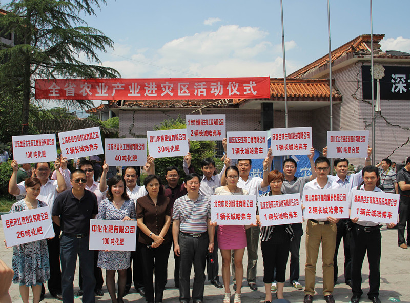 2013年5月20日,在“4.20”芦山强烈地震发生一个月之际,上海联业农业科技有限公司参加了四川省“全省农业产业进灾区活动”,执行董事蒋贤权代表公司向芦山地震灾区捐赠了价值20余万元的两台哈弗农用车。本次活动得到了四川省委常委、省委农工委主任李昌平,省人大常委会副主任刘家强,副省长曲木哈史,省政协副主席王正荣等省领导的充分肯定,必将有效助推芦山农业农村恢复重建的步伐。