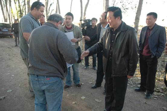 2012年10月24日至10月28日以色列美兹公司两位工程人员Nir.Yogev,Dan.Dovrat 来到我们内蒙古进行项目调查。10月24日两位客人来到我们美丽的通辽市开鲁县,首先参观了上海联业内蒙古分公司滴灌及水肥一体化生产基地,客人详细了解了施工进度及设计规划。然后两位以色列工程专家又赴三星村收集工程数据,采集土样及水样,GPS定位项目边界及水源。两天的行程丰富而紧凑。】